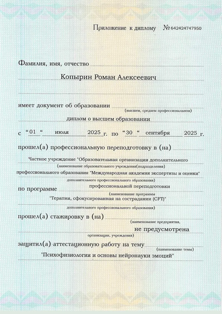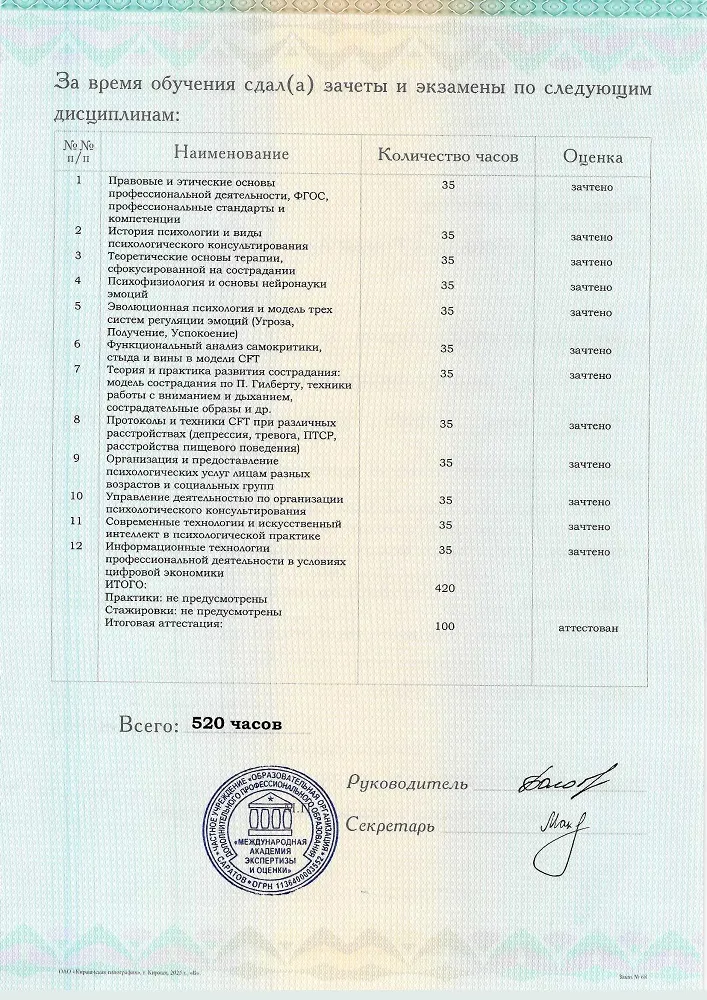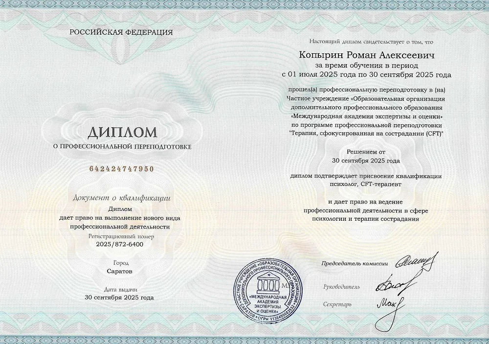 Данный курс позволит вам освоить востребованную профессию CFT-терапевта. И получить все навыки, необходимые для успешной карьеры: