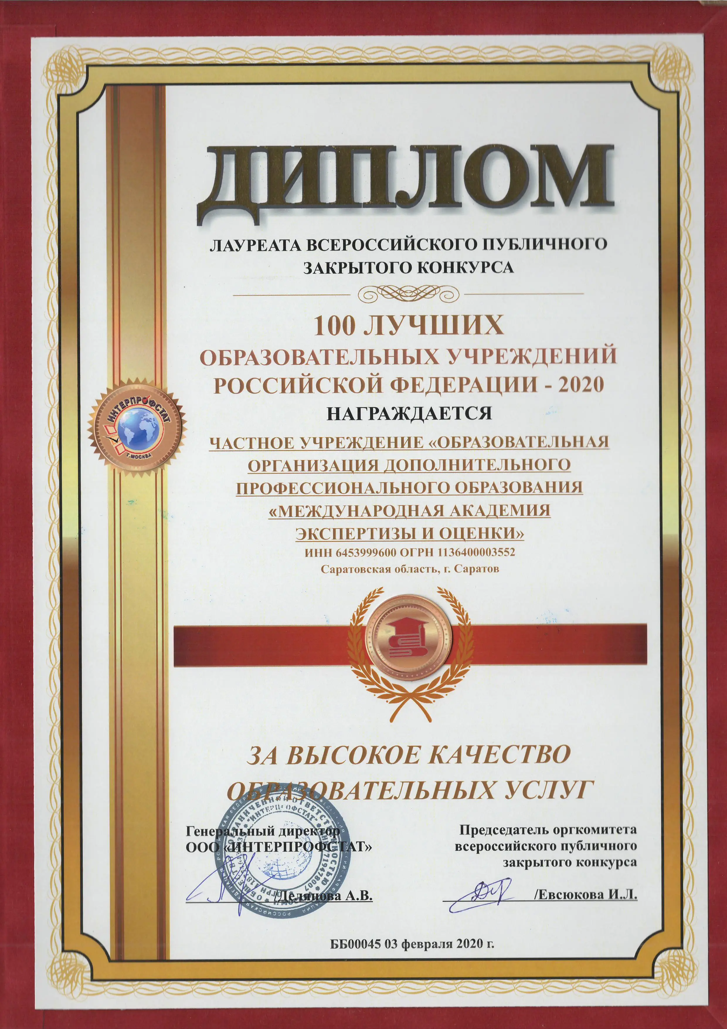 По данным Интерпрофстата, в 2018 г. мы вошли в 100 лучших образовательных учреждений России. По данным Росстата, в рамках аудита социально-экономического проекта «Элита Нации», заняли 34 место среди 700 предприятий России по ОКВЭД «Образование профессиональное дополнительное». Стали №1 в Саратовской области, №5 в Приволжском федеральном округе и №23 в России, в национальной номинации «Лидер отрасли» 2021, по данным ФНС и Росстата.
